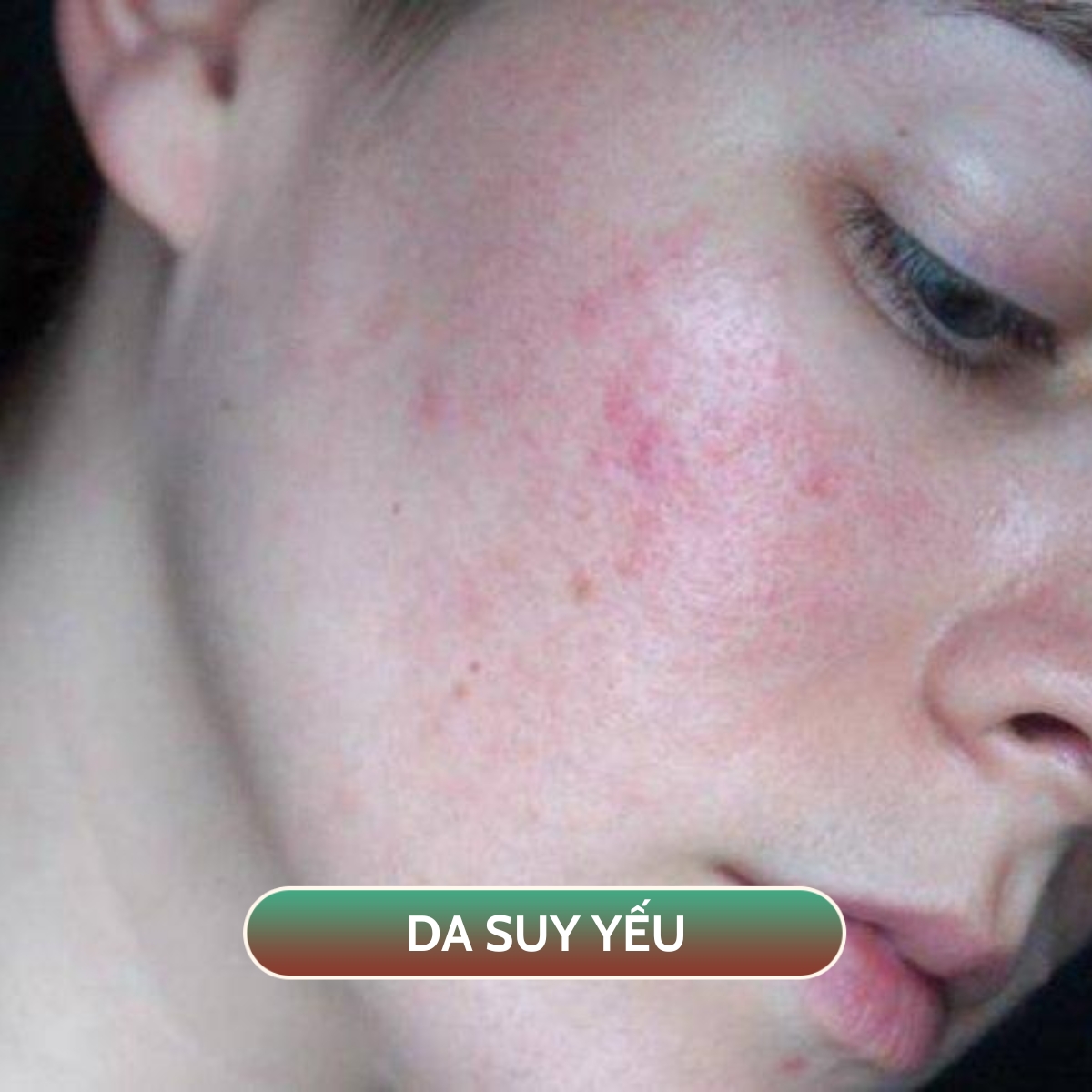 Da vàng sậm, xỉn màu, màu da không đồng đều.